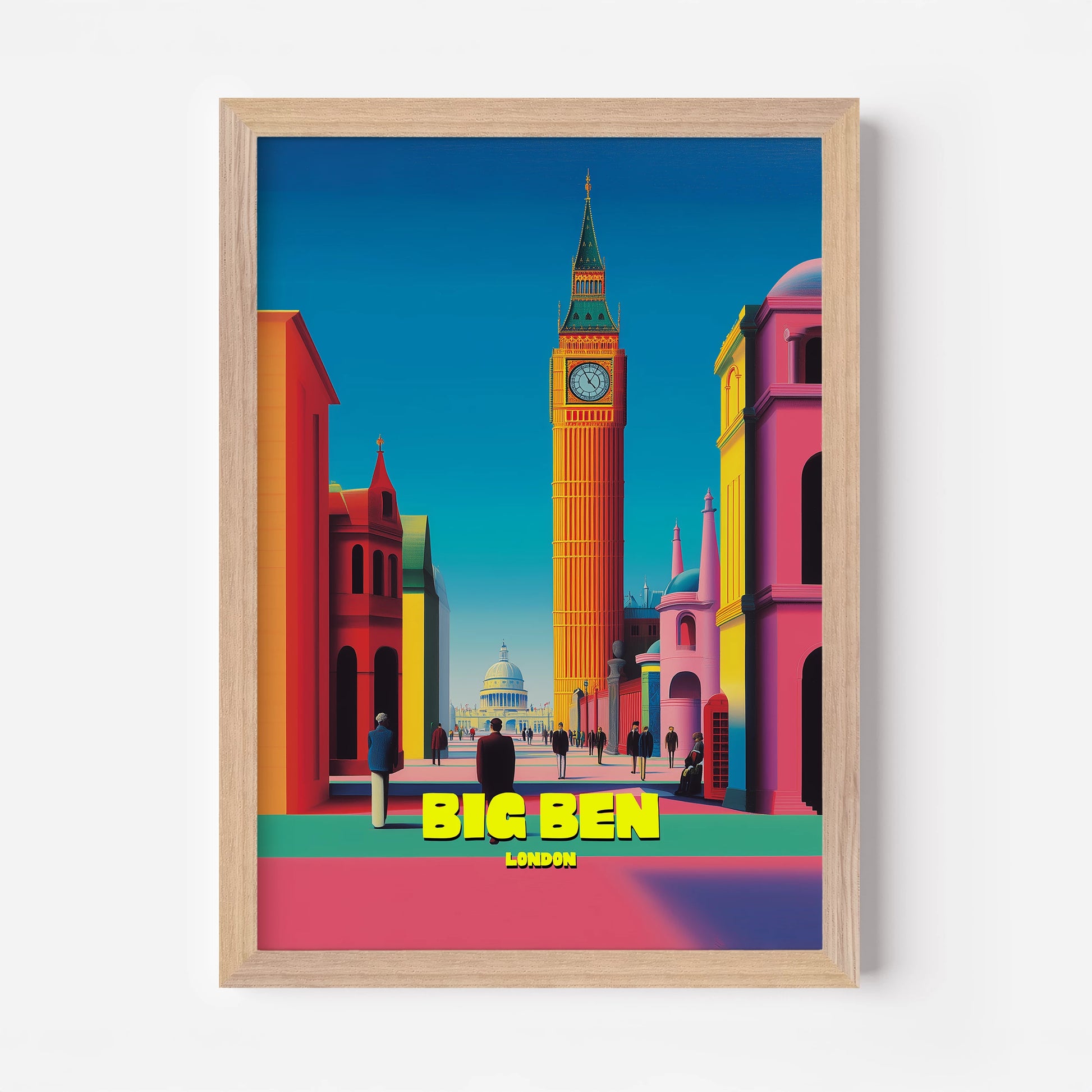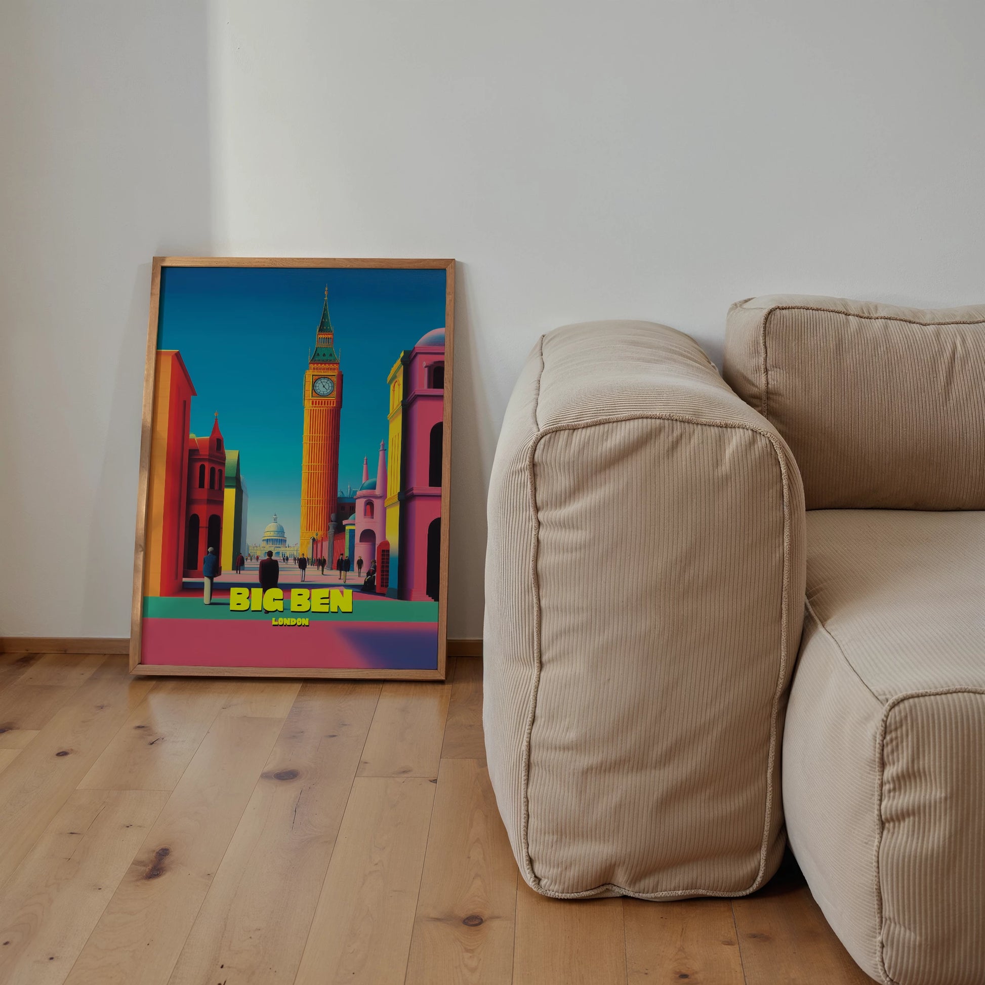 Bring London’s most iconic landmark into your home with this bold Big Ben travel poster. Featuring vibrant shades of orange, pink, and teal blue, it transforms the classic skyline into a modern pop-art scene. The striking mix of warm and cool tones gives this print a fresh, contemporary feel. Perfect for anyone who loves London’s history with a colourful twist. A statement piece for your wall and an ideal gift for travel enthusiasts.