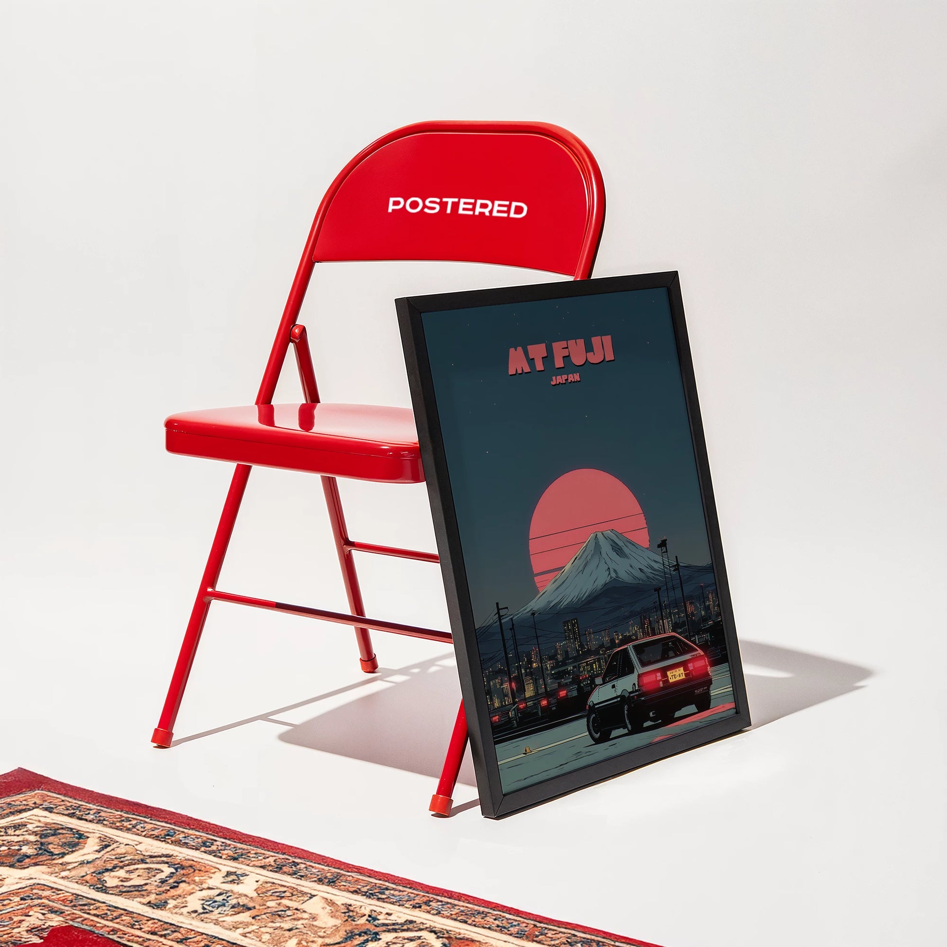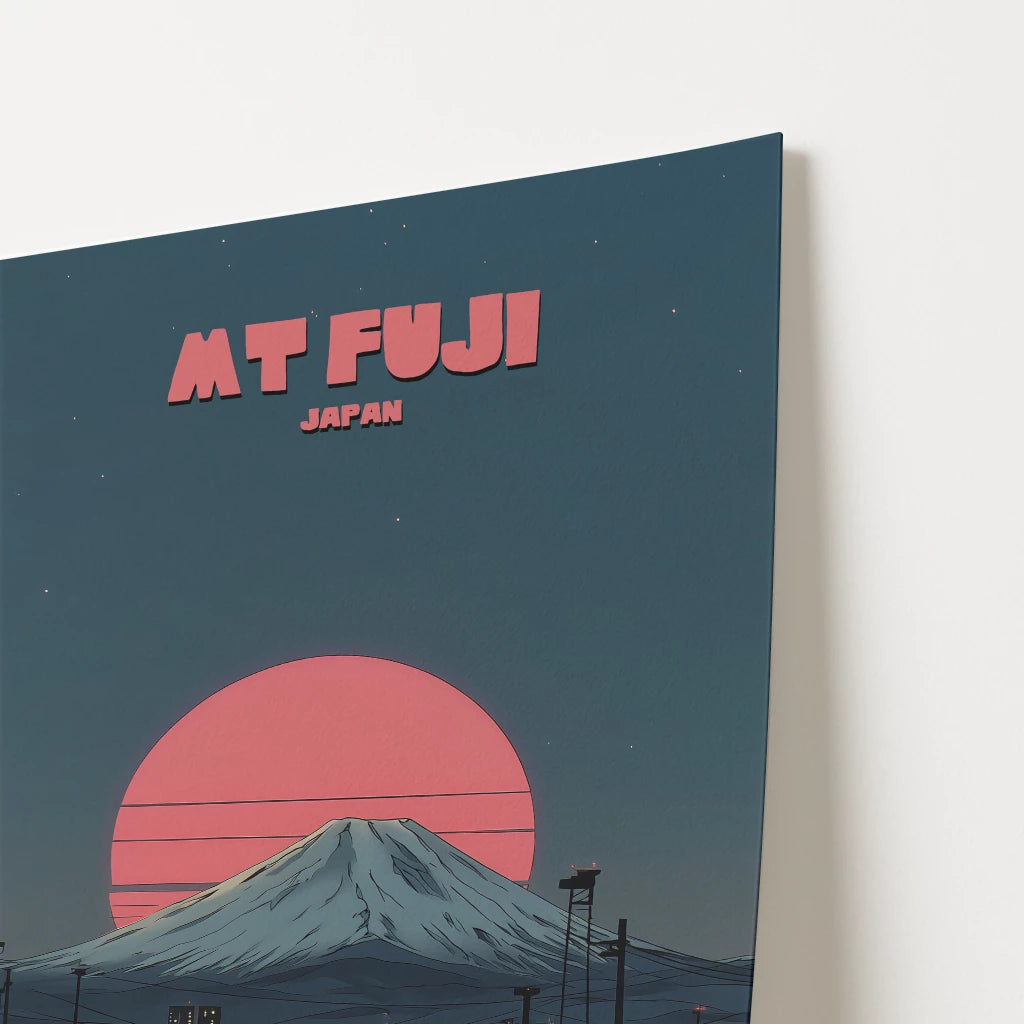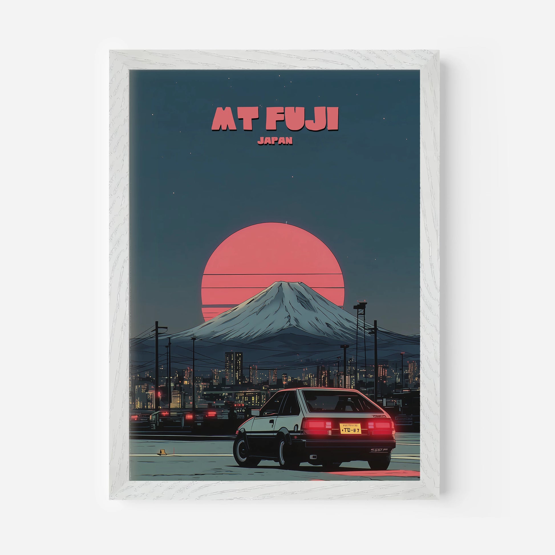 Bring a touch of Japanese style and retro charm to your walls with this striking Mt Fuji travel poster. Featuring the iconic snow-capped peak at sunset, framed by a glowing red sun and the twinkling lights of the city, the design blends nature’s beauty with urban energy. The foreground showcases a classic car, adding a nostalgic, cinematic feel. Ideal for lovers of Japanese culture, cityscapes, and vintage-inspired art, this Mt Fuji travel poster is a bold statement piece for any home or office.