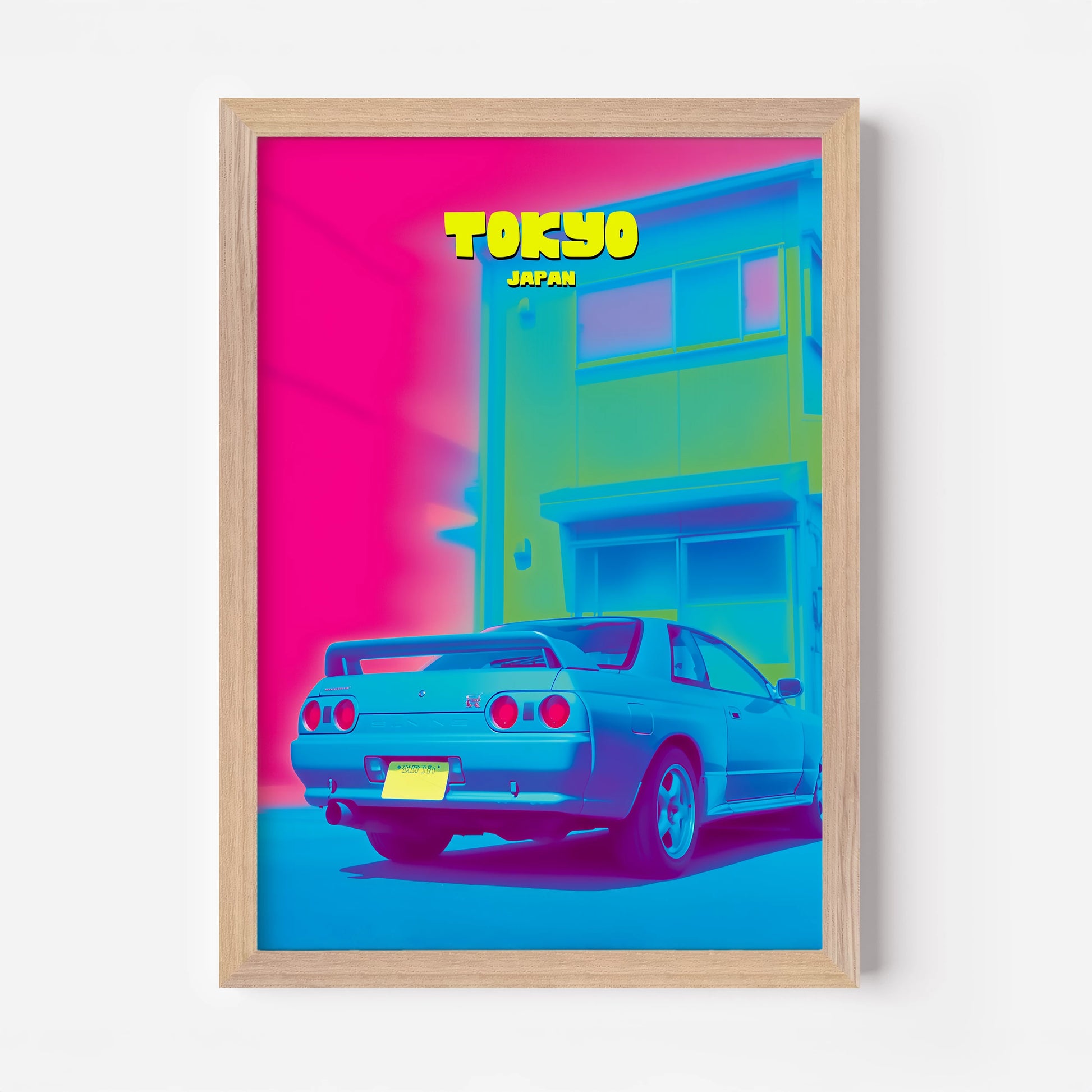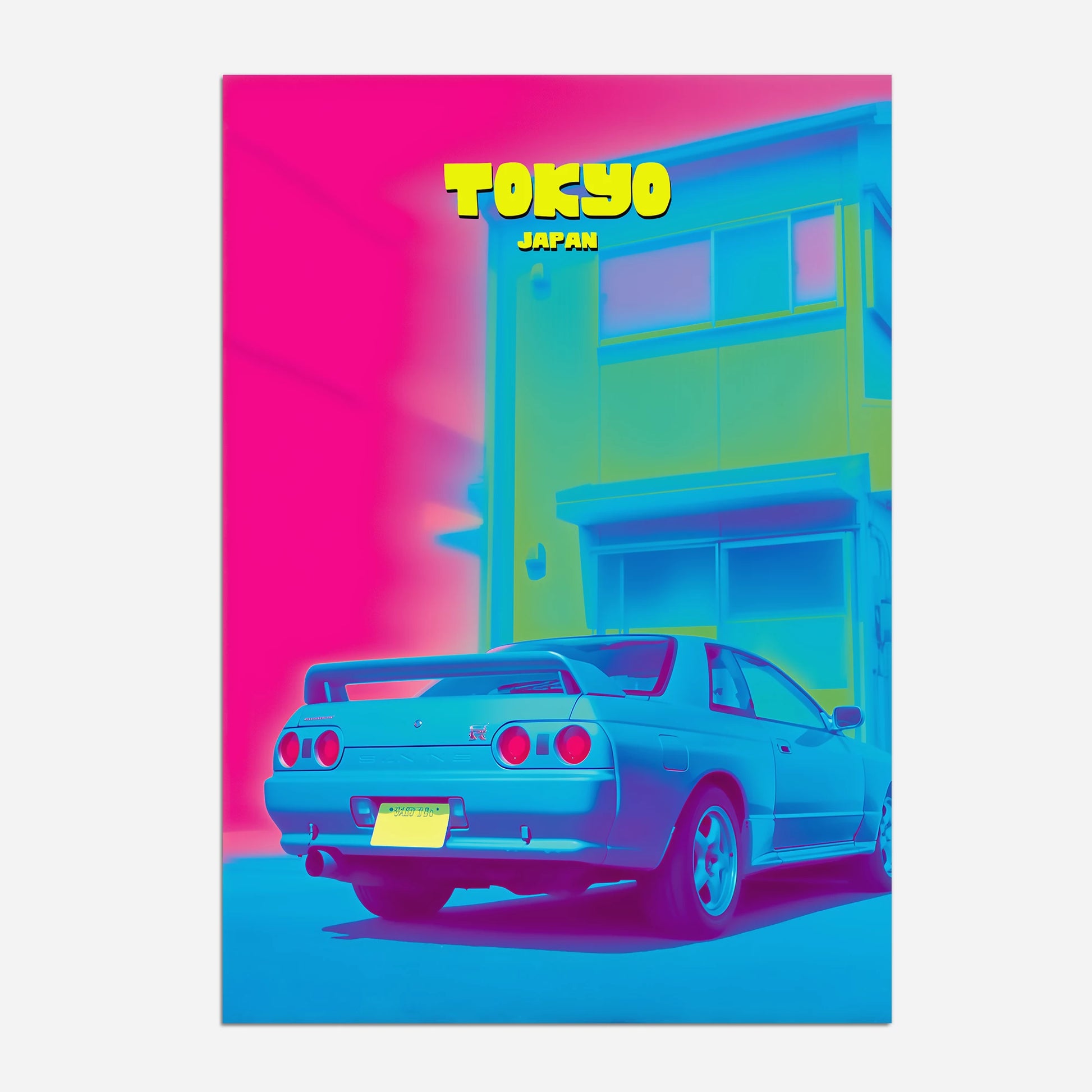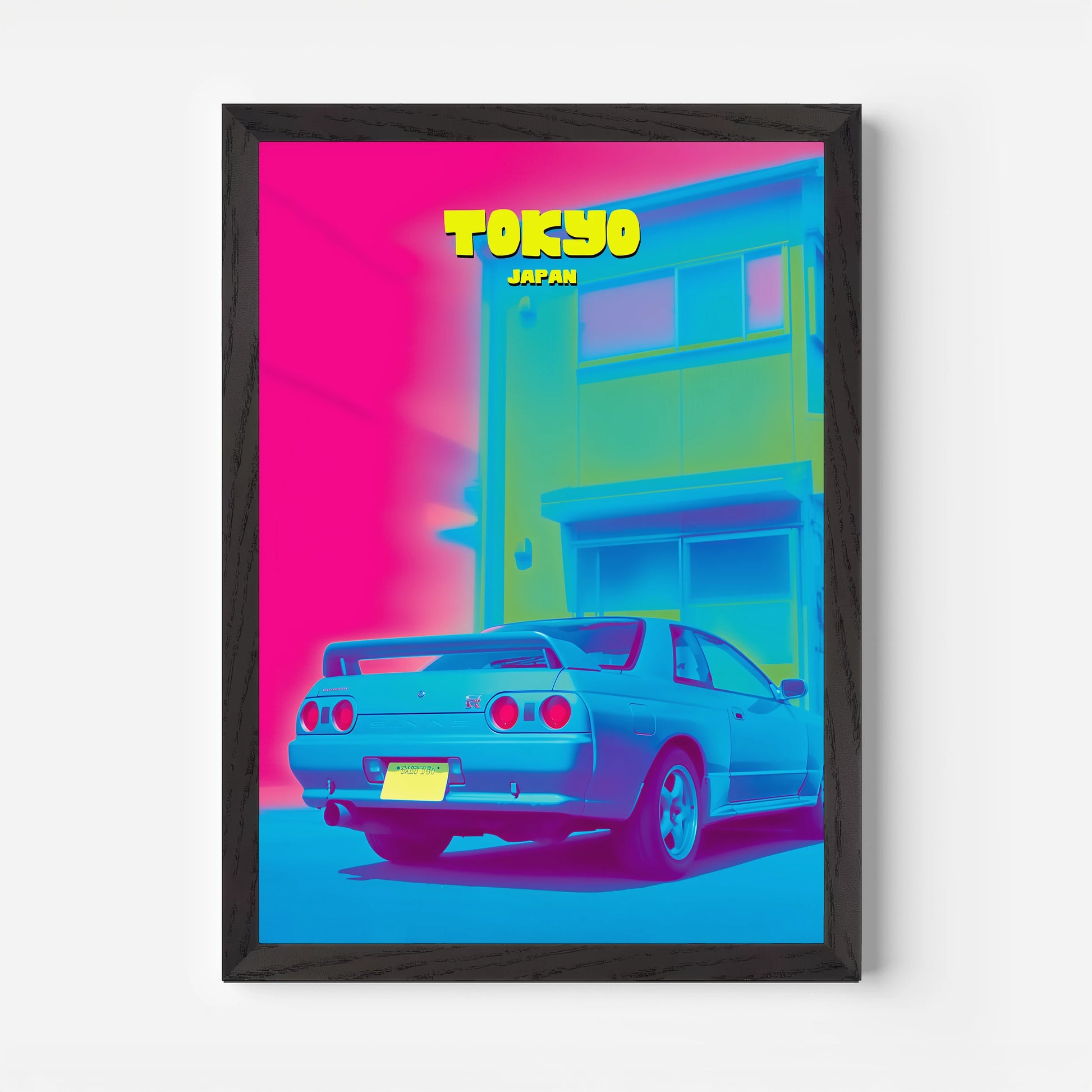 Celebrate modern Tokyo with this bold travel poster featuring the iconic Nissan Skyline. The car is set against a backdrop of neon pinks, aqua blues and bright yellows, giving it a retro-futuristic vibe. A perfect blend of Japanese culture, automotive history and contemporary design. Ideal for car lovers, city enthusiasts and anyone who wants statement wall art. A dynamic piece that captures Tokyo’s fast-paced energy.
