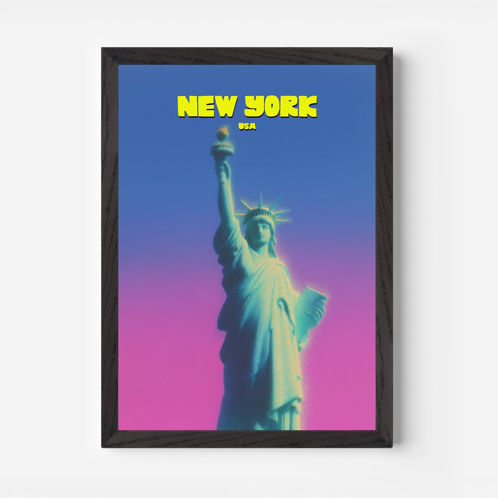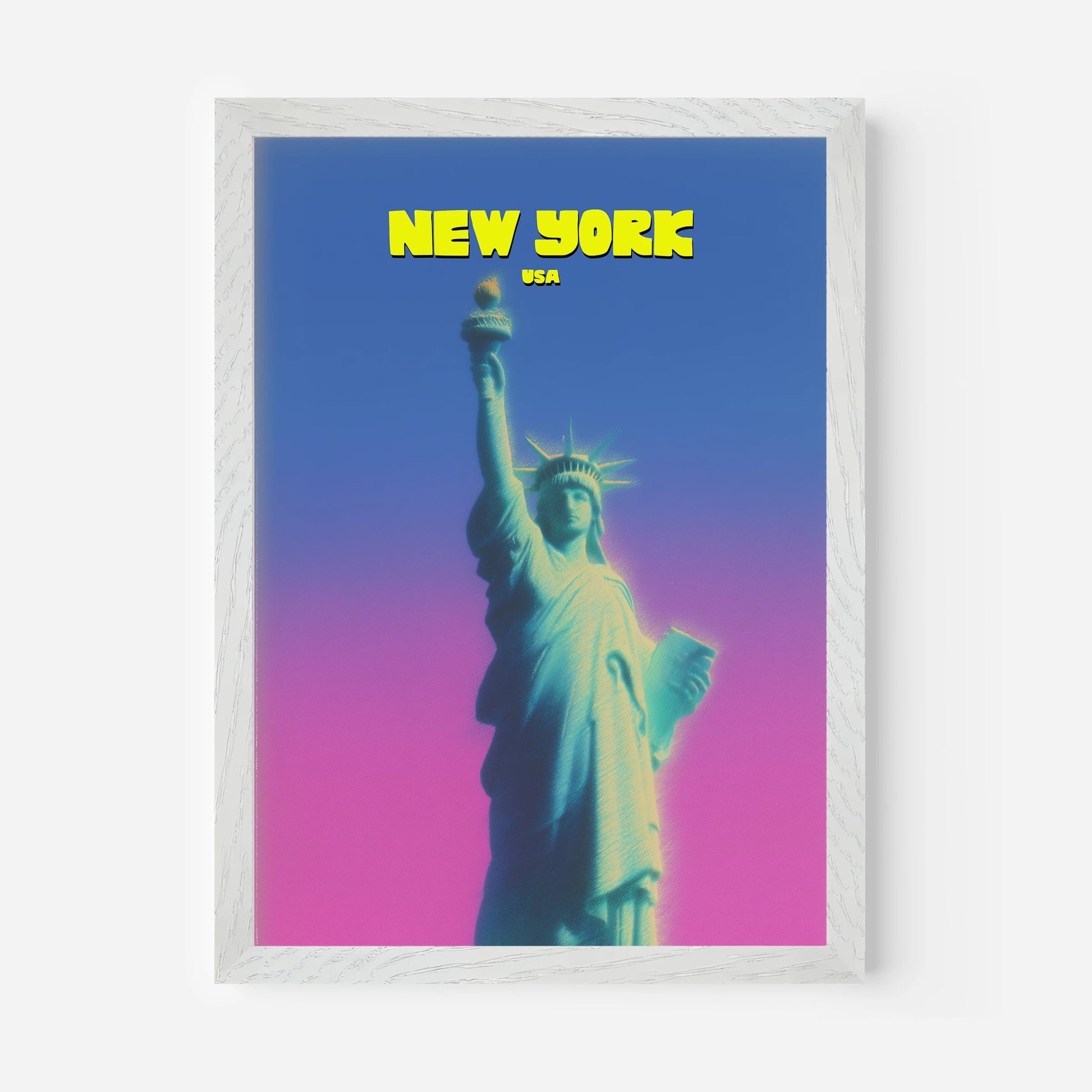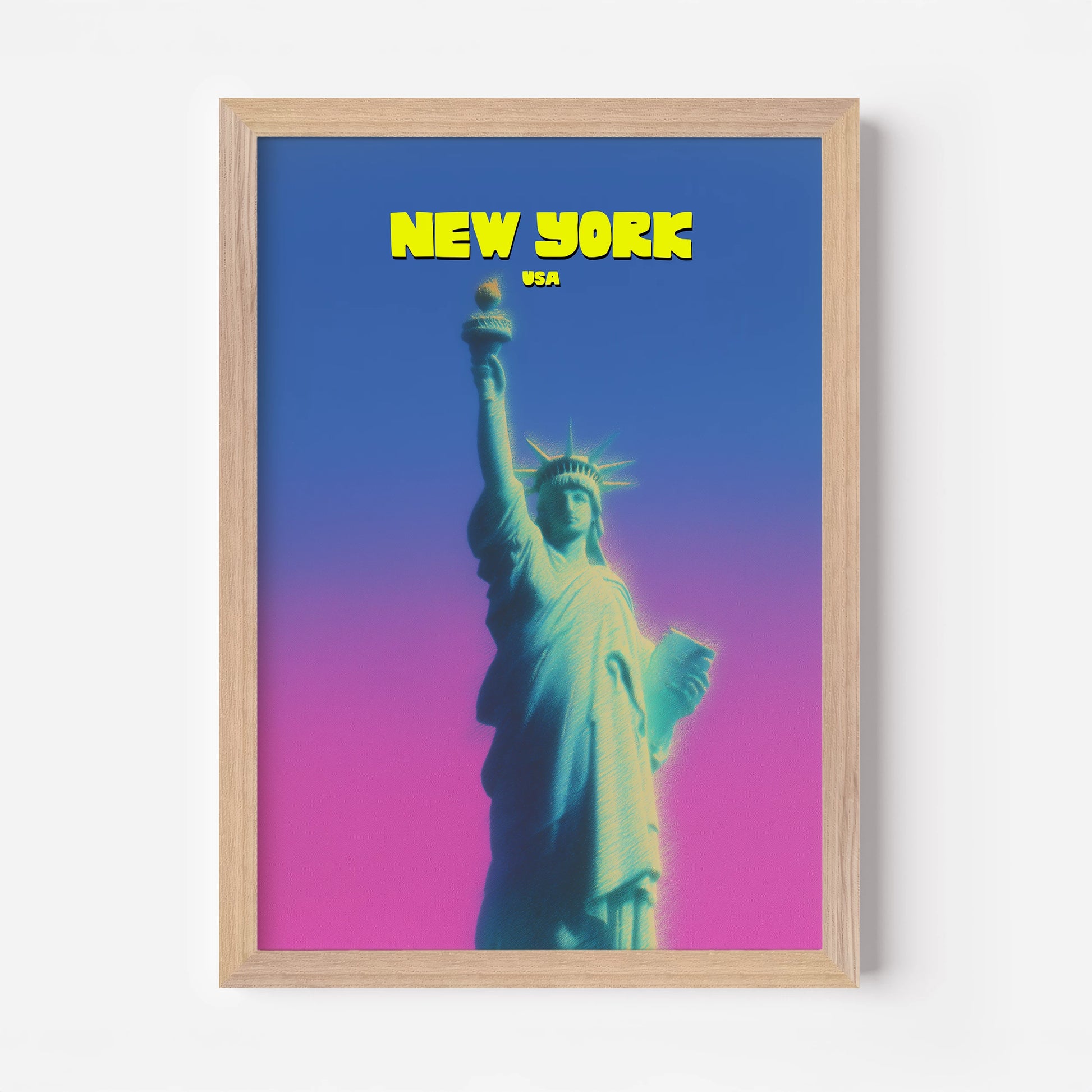 Celebrate one of the world’s most famous landmarks with this striking Statue of Liberty travel poster. Featuring a bold, modern gradient background of vivid pinks and blues, this artwork reimagines the iconic figure in a contemporary, eye-catching style. Perfect for lovers of New York, art collectors, or those seeking a statement wall piece. The high-quality print captures every detail, making it a stunning addition to your home or office. This travel poster brings the spirit of freedom and adventure into any space.